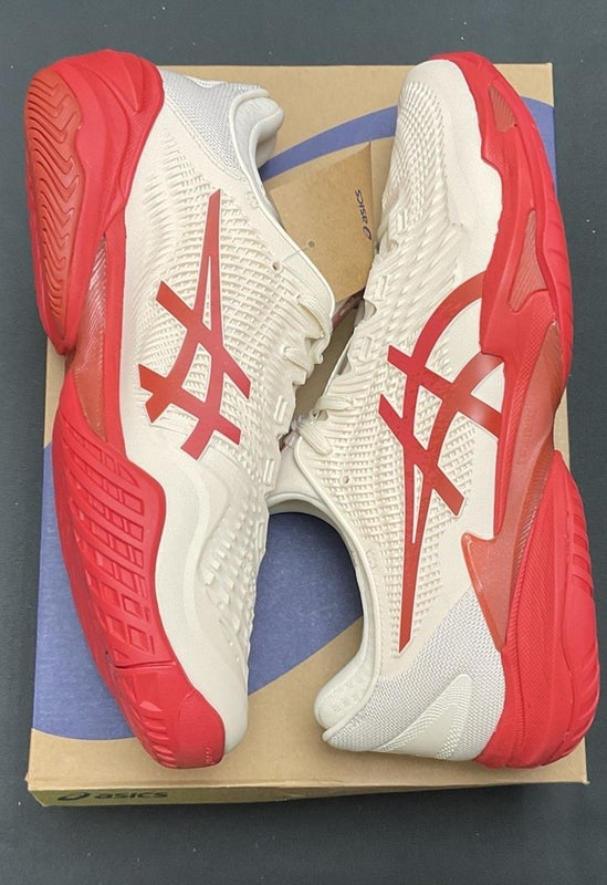 Asics Mens Court FF3 Novak Size 11.5 (Cream/Classic Red)