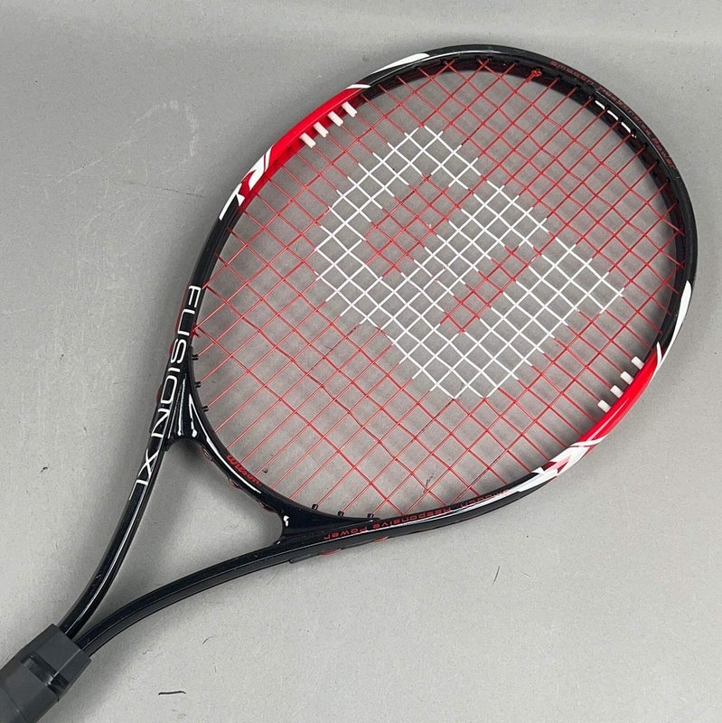 Wilson Fusion XL Tennis Racquet 4 3/8" Grip & 112in Head Size Quality: Good: Frame and bump guard in good condition. Will have small signs of wear & tear About Gear4Good & LPF When you purchase from Gear4Good, you're not only getting fantastic gear at a great price but also contributing to a great cause! 100% of your purchase goes towards furthering our mission of giving every kid a chance to play. Our Mission: LPF redistributes equipment to expand access and equity within youth sports and recreation programs in under-resourced communities. Your purchase helps us bridge the gap and provide opportunities for kids who might not otherwise have access to sports. Our Vision: A world with no sidelines. Our History: Founded in 2013, Leveling the Playing Field emerged in response to the growing inequity in youth sports. Our founder saw the vast amount of equipment wasted across all levels of sports and created a "food bank" for sports equipment. Since then, we've been committed to ensuring that cost is not a barrier for kids to play. Join us in our mission to level the playing field and make sports accessible to all. Thank you for your support! Wilson Fusion XL Tennis Racquet 4 3/8" Grip & 112in Head Size Quality: Good: Frame and bump guard in good condition. Will have small signs of wear & tear About Gear4Good & LPF When you purchase from Gear4Good, you're not only getting fantastic gear at a great price but also contributing to a great cause!100% of your purchase goes towards furthering our mission of giving every kid a chance to play. Our Mission: LPF redistributes equipment to expand access and equity within youth sports and recreation programs in under-resourced communities. Your purchase helps us bridge the gap and provide opportunities for kids who might not otherwise have access to sports. Our Vision: A world with no sidelines. Our History: Founded in 2013, Leveling the Playing Field emerged in response to the growing inequity in youth sports. Our founder saw the vast amount of equipment wasted across all levels of sports and created a "food bank" for sports equipment. Since then, we've been committed to ensuring that cost is not a barrier for kids to play. Join us in our mission to level the playing field and make sports accessible to all. Thank you for your support! Gear4Good... Brand: Wilson Color: Black Grade: B Grip Size: 4 3/8" Sport/Activity: Tennis Good: Frame and bump guard in good condition. Will have small signs of wear & tear