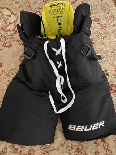 Black Senior Used Medium Bauer Supreme 2S Hockey Pants Pro Stock