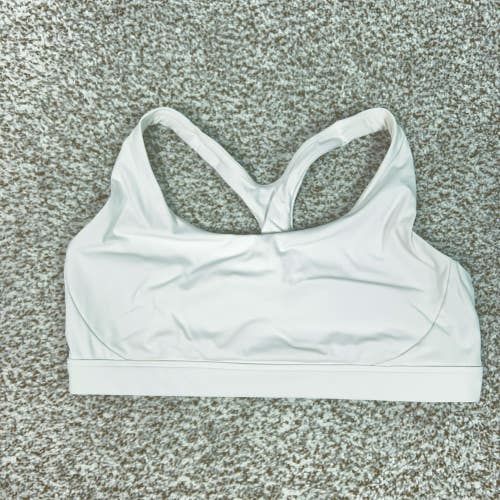 Athleta Sports Bra Womens Large White Racerback Mesh Workout Gym Athletic Logo