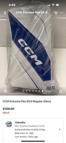 Intermediate CCM E-Flex 5.9 Goalie Glove Regular (Used)