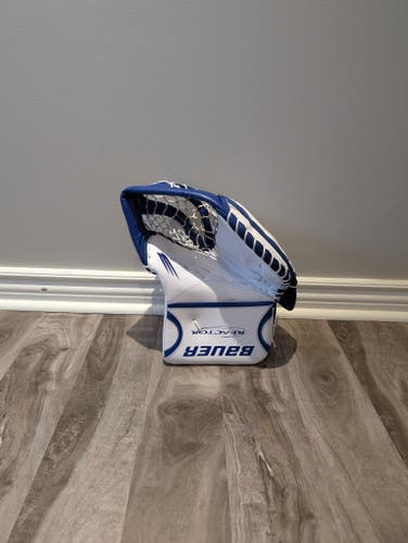 White & Navy Senior Bauer Reactor R5 Pro Goalie Glove & Blocker Set Regular (Used)