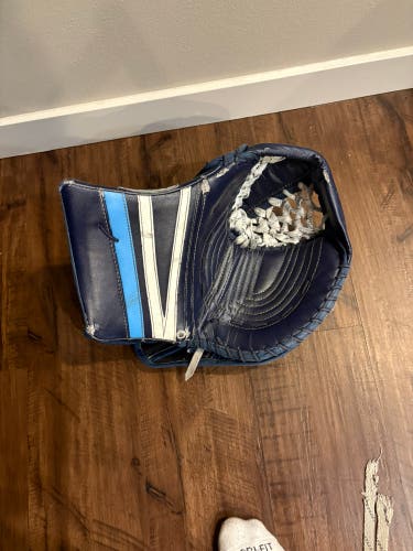 • Goalie Hockey Blockers: Worn on the dominant hand, blockers help direct pucks away from the net. Good blockers should feel well-balanced and provide a strong rebound off the board. Look for an adjustable wrist strap, reinforced finger protection, and a high-quality palm that maintains grip over time. Bauer hockey goalie blockers and CCM hockey goalie blockers are well-known brands that offer lightweight builds.