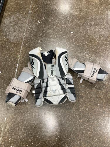 Unlike player equipment, goalie gear is highly specialized and includes leg pads, blockers, catch gloves, chest and arm protectors, goalie masks, goalie skates, and often pants and knee guards