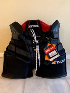 The CCM Premier Pro Goalie Pants provide a slightly wider "barrel" fit, shorter hip padding for mobility, and a roomy interior making them ideal for various chest/protector setups. The popular interior belt allows for a snug waist fit without sacrificing coverage, and the hidden zipper feature offers up to 1" inseam adjustment for ultimate customization and comfort.